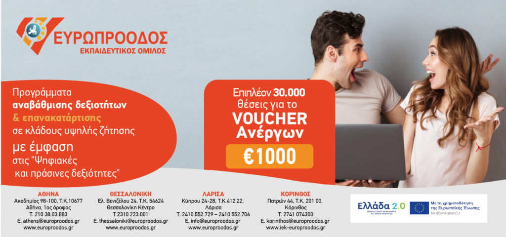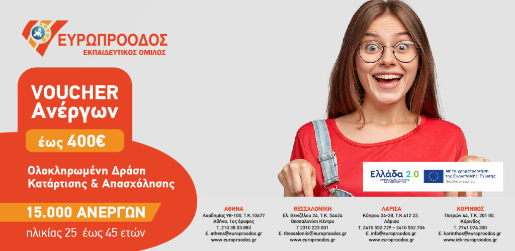 VOUCHER ΑΝΕΡΓΩΝ ΜΕ ΕΚΠΑΙΔΕΥΤΙΚΟ ΕΠΙΔΟΜΑ ΕΩΣ 1000 ΕΥΡΩ